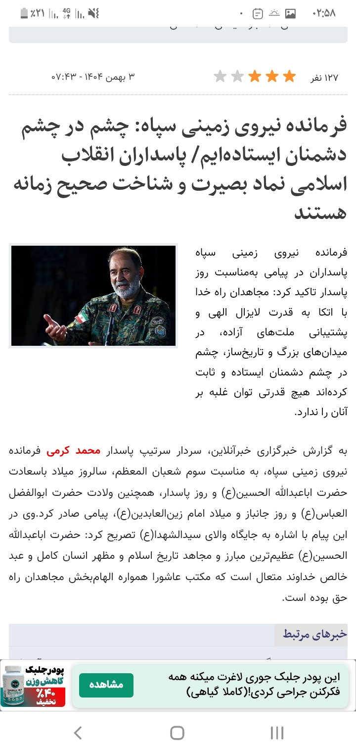 حجتالاسلام والمسلمین علیاکبری با اشاره به جایگاه سپاه پاسداران انقلاب اسلامی تأکید کرد: امید است سپاه، که مجمعی از بهترینهای کشور است، همواره درخشش و اثرگذاری خود را حفظ کند. در این روز یاد میکنیم از سردار شهید سلیمانی، مجاهدان دفاع مقدس، و دیگر سرداران و سبزپوشان افتخارآفرین همچون سردار سلامی، سردار حاجیزاده، سردار باقری، سردار رشید و سردار کاظمی و از خداوند برای همه آنان علو درجات و رحمت واسعه مسئلت میکنیم.
